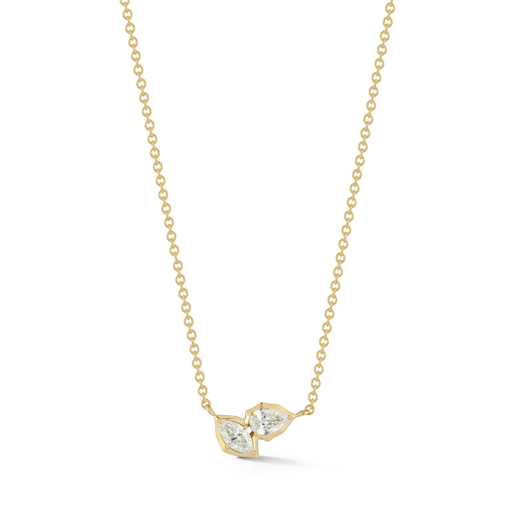 The Poppy Two-Stone Pendant is classic staple in any neck stack. An everyday essential, Poppy Two-Stone Pendant delicately hangs on the neck by an 18 inch adjustable ball chain. Handcrafted in 18-karat gold and featuring 0.40tcw of pear and marquise diamonds.