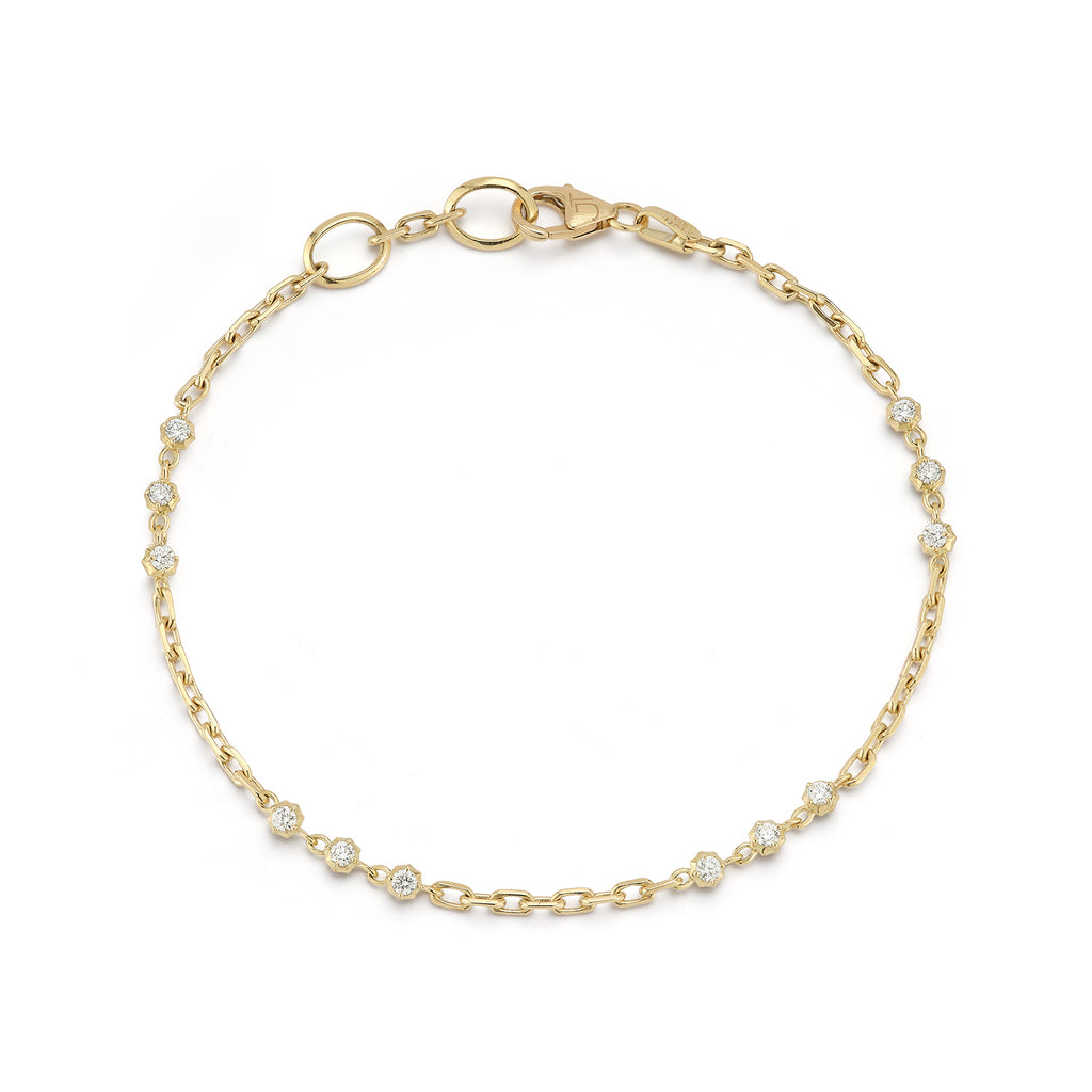 A new casual way to wear a diamond bracelet, the Sophisticate Station Bracelet combines our favorite elements of the everyday chain bracelet with all the sparkle and glamour of a classic line bracelet into one wearable piece. Handcrafted in 18-karat gold and featuring 0.30tcw of round, brilliant-cut diamonds, the Sophisticate Station Bracelet is the perfect way to start building your stack.