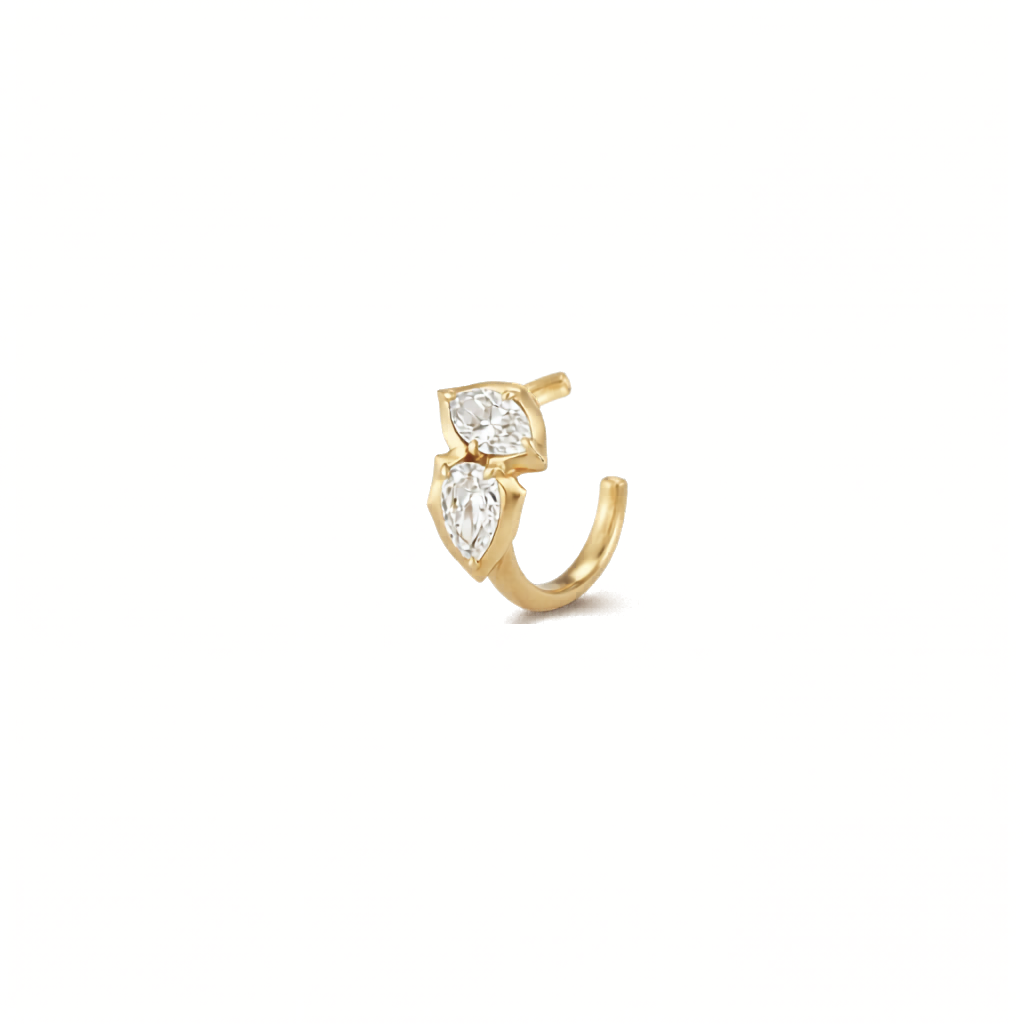 Designed to add the perfect hint of sparkle to your ear stack, the Poppy Ear Cuff securely hugs your ear making it an easy-to-wear everyday essential. Handcrafted in 18-karat gold and featuring 0.40tcw of a pear and marquise shaped diamonds, the Poppy earcuff feels and looks like it's almost floating on the ear.