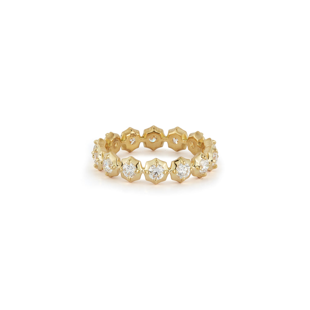 A whimsical play on the classic eternity band, the Sophisticate Eternity Band features 14 x 2.7mm round, brilliant-cut diamonds mounted in our signature Alchemy prong setting all the way around the ring.