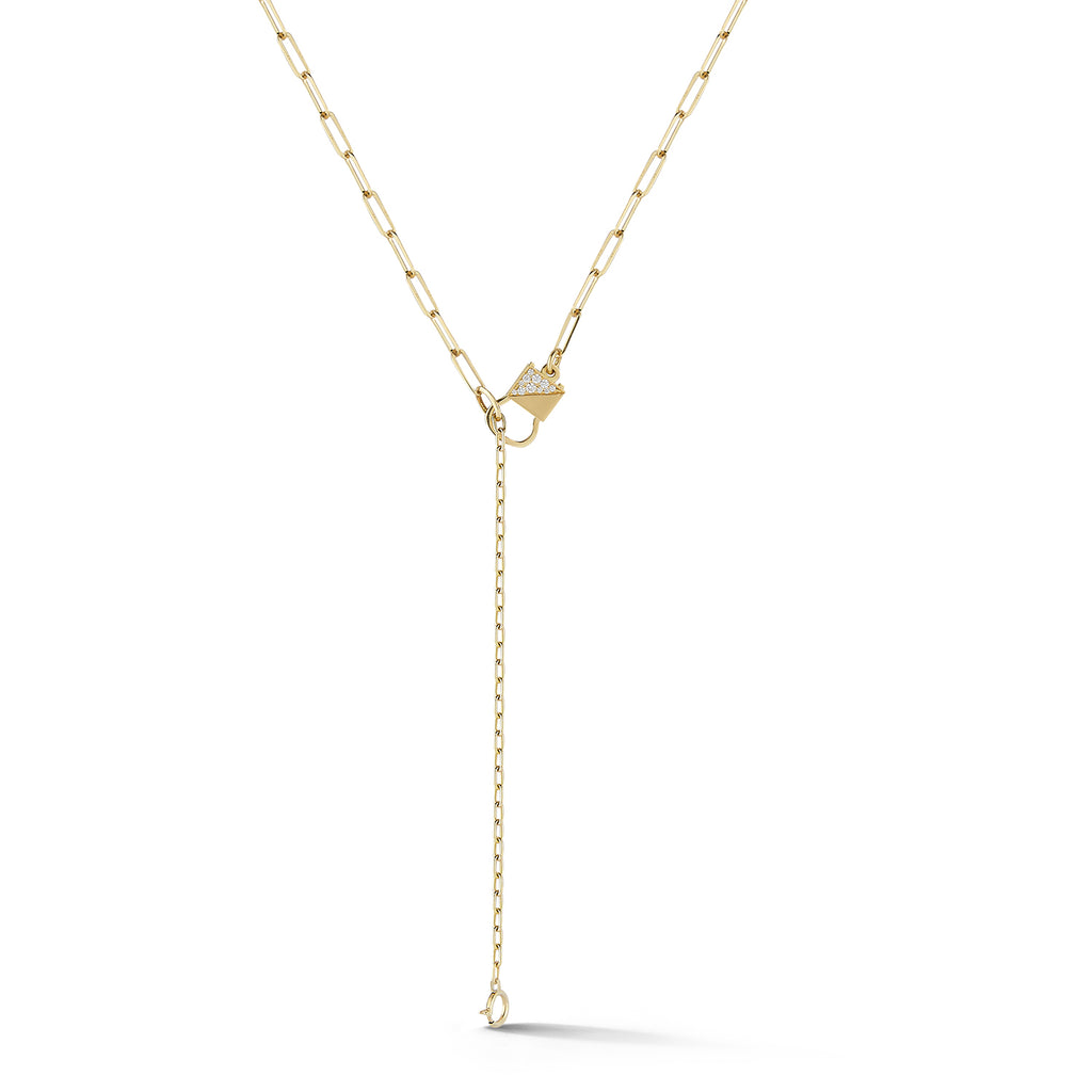 An updated version of our classic Betty Necklace, Beatrix is a subtle yet innovative everyday essential. Handcrafted in 18-karat gold and featuring 0.22tcw of diamonds on the front and back of the lock-inspired clasp. Endlessly customizable, you can easily adjust the 22-inch chain and wear the Beatrix Necklace in a number of different ways. Add personal touch to your Beatrix Necklace by adding a laser engraved message on the clasp.