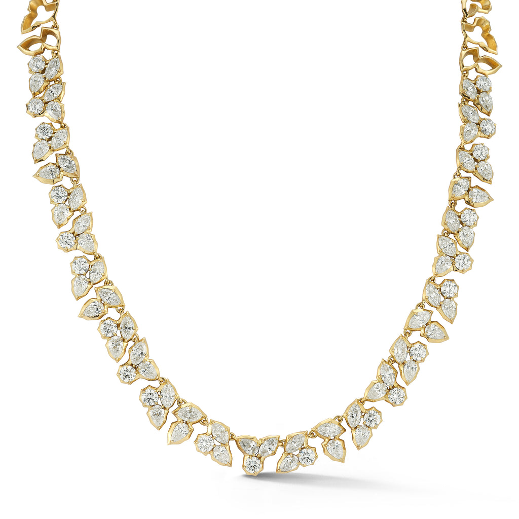 A show-stopping new addition to our Poppy collection, the Poppy Line Necklace is soon to become your go-to special occasion piece. Handcrafted in 18-karat gold and featuring 14.37tcw of alternating marquise, round, and pear-shaped diamonds, the Poppy Line Necklace is designed with open silhouette settings to provide a modern feel with negative space.