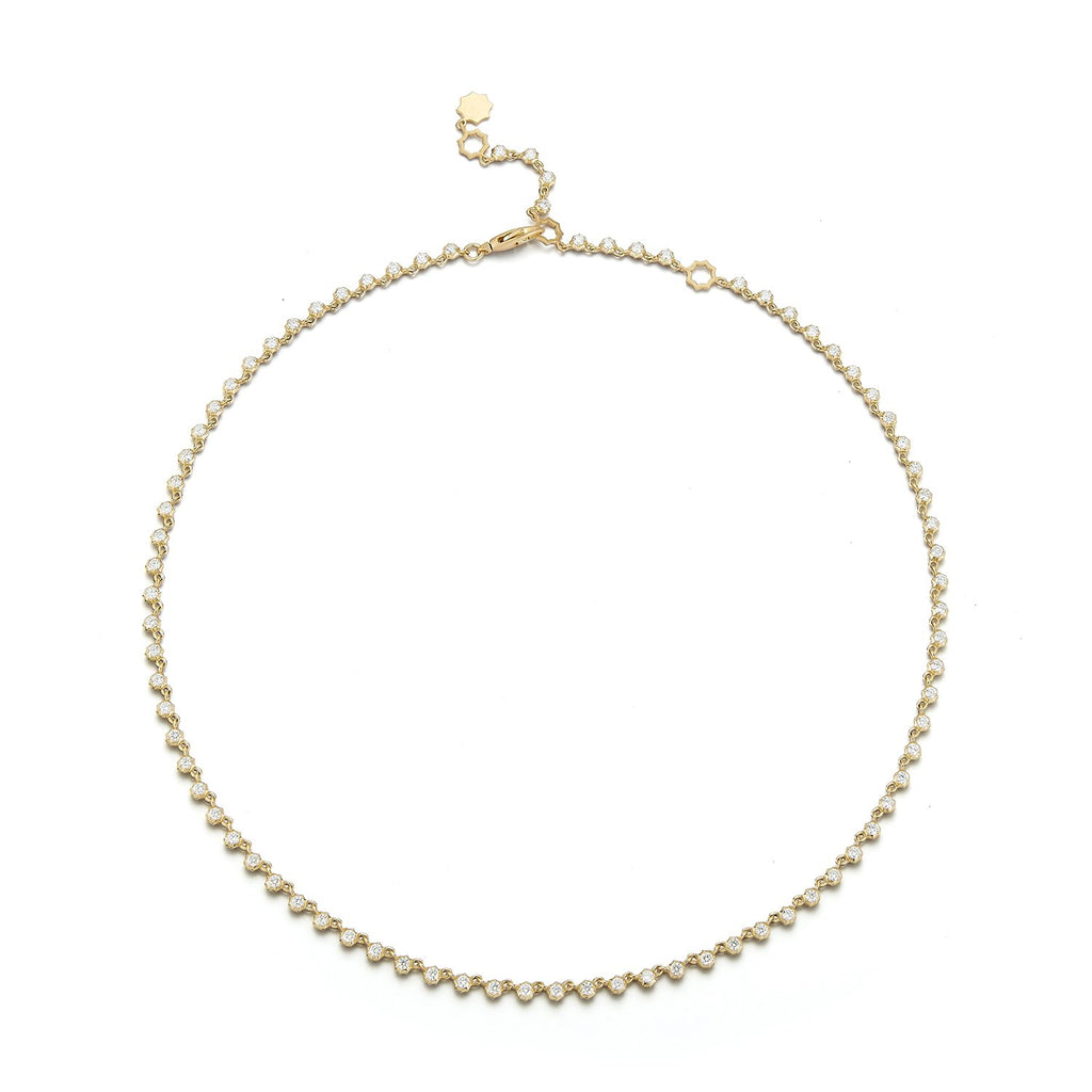 The Small Sophisticate Choker is handcrafted in 18-karat gold and features 2.02tcw of round brilliant-cut diamonds. The use of our signature Alchemy setting gives this classic silhouette a modern upgrade with a slightly edgy feel.