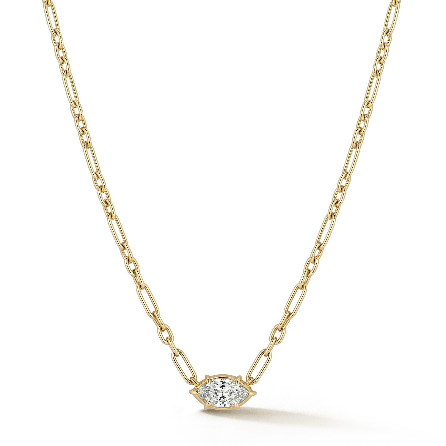 Inspired by our Sienna engagement ring, this one-of-a-kind pendant features a 1.01-carat marquise-cut diamond set in an 18-karat yellow gold basket with six prongs. Styled on the 18-inch Winona Chain, it brings texture and dimension to any stack.