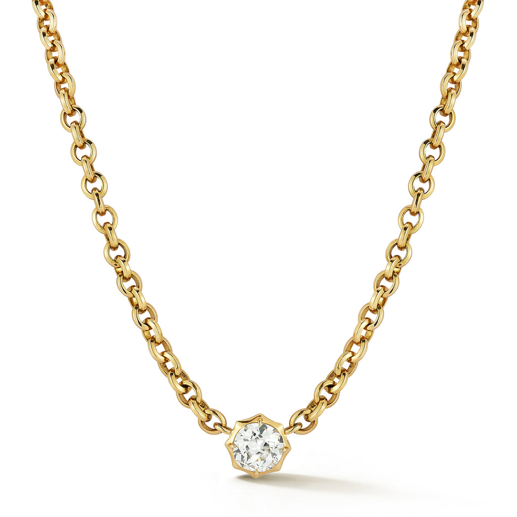 A 3.03-carat Old European–cut diamond is set in our iconic alchemy setting on an 18-karat yellow gold rolo chain. The contrast of a luminous center stone and substantial chain gives this piece its bold presence.