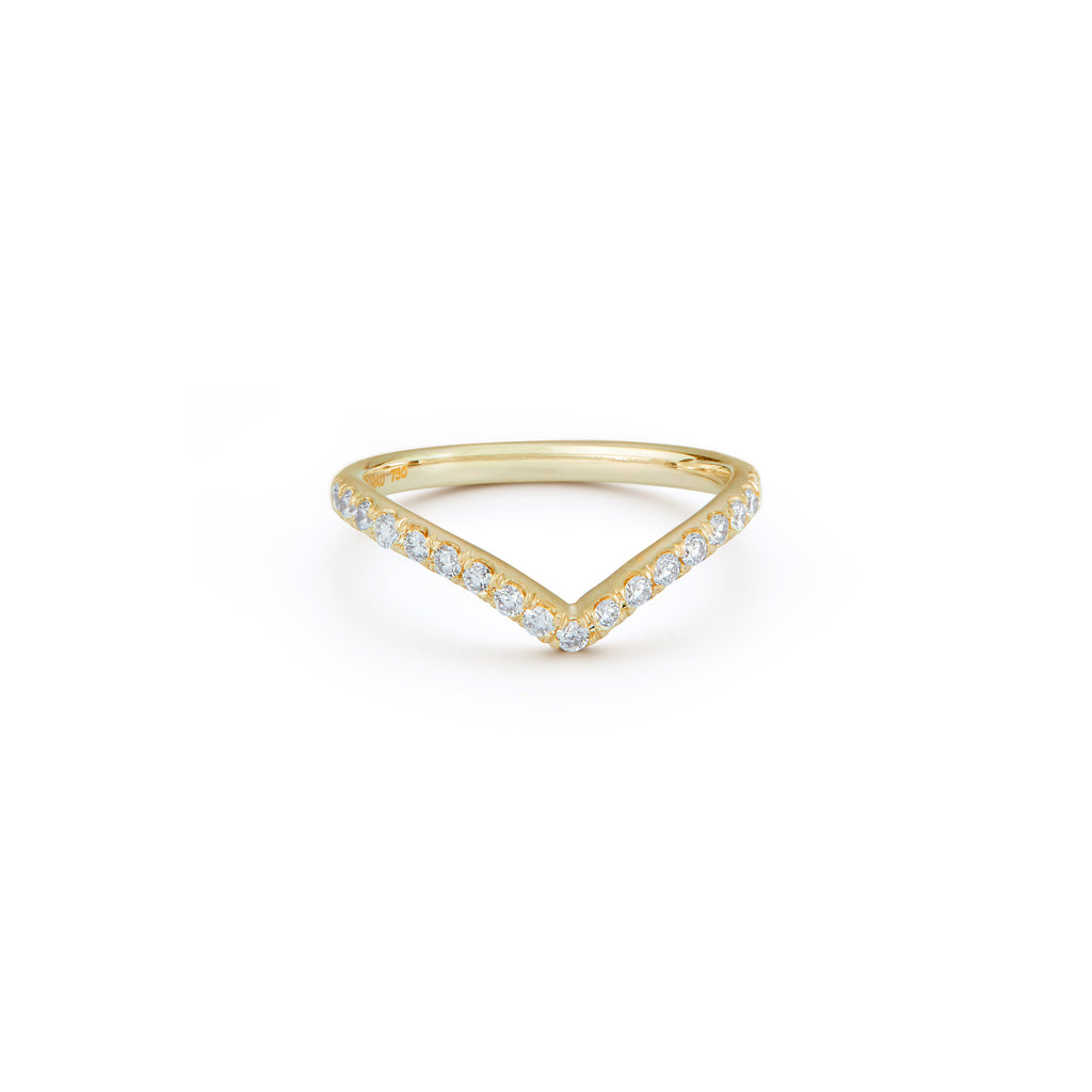A daring silhouette, the Pave Deep V Band provides elegant lines and focusing effects for any stack. Handcrafted in 18-karat gold and featuring 0.26tcw of pave diamonds, the Pave Deep V Band can be easily incorporated into every look.