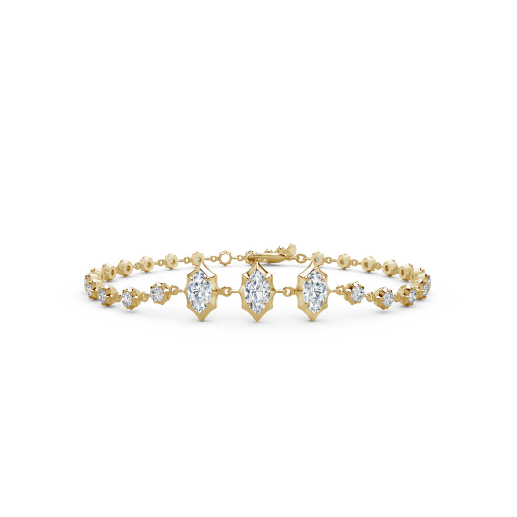 A new take on a classic tennis bracelet, the Maverick Diamond Tennis Bracelet combines our signature Alchemy setting with the classic feel of a vintage silhouette. Handcrafted in 18-karat gold, the Maverick Diamond Tennis Bracelet features 3 marquise-shaped diamonds accompanied by 22 round, brilliant cut diamonds. The delicate chain design allows the bracelet to hand sophisticatedly on the wrist.