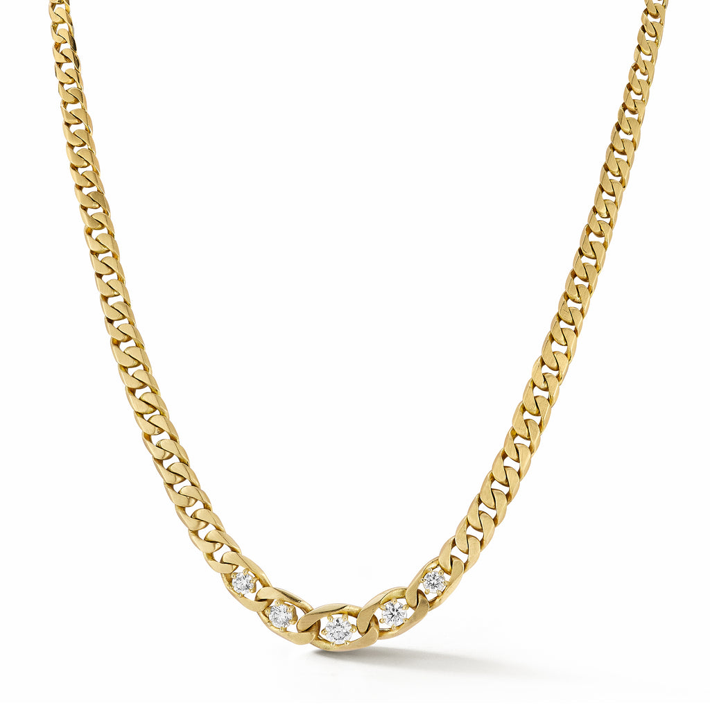 A new JT favorite, the Piper Necklace is a vintage-inspired piece that fits every occasion. 14 inches of chain handcrafted in solid 18-karat gold and featuring 0.58tcw of round, brilliant-cut diamonds, the Piper Necklace is made with our signature satin finish making every diamond pop. The Piper Necklace comes with a matching chain extender that adds 2 inches of length for a total of 16 inches.